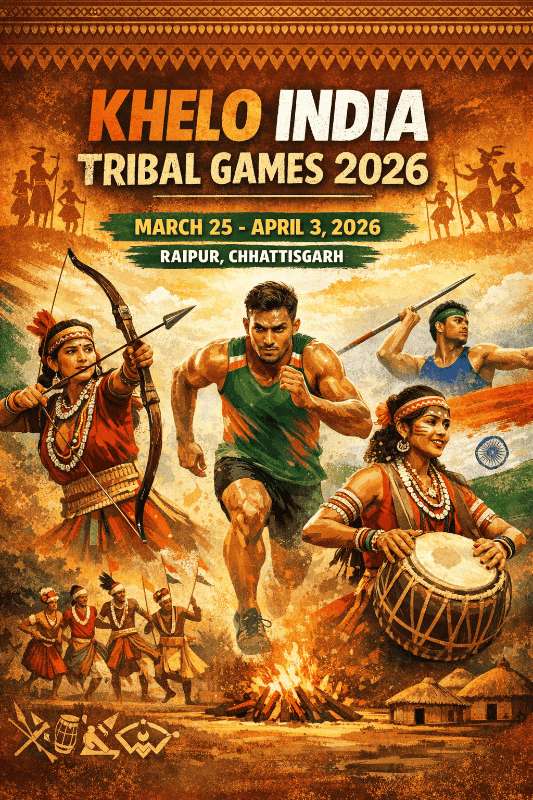 š Khelo India Tribal Games 2026 Witness an incredible celebration of sports, culture, and talent at the Khelo India Tribal Games 2026. š Athletes from tribal communities across India š Traditional and modern sports competitions š Cultural performances and local experiences š Date: March 25 ā April 3, 2026 ā° Time: 9:00 AM onwards š Location: Raipur, Chhattisgarh Experience the spirit of unity, sportsmanship, and culture in this grand national event. š Open for all spectators