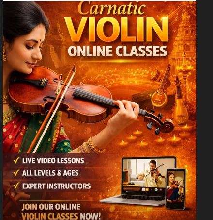 Carnatic Violin Online Classes – Learn Indian Classical Music Mode: Online (Live Video Classes) Eligibility: Open to all age groups and skill levels (Beginner to Advanced) Learn the art of Carnatic violin from the comfort of your home with structured and interactive online classes. These sessions are designed for students who are passionate about Indian classical music and want to build a strong foundation or advance their skills. The classes are conducted live by experienced instructors who guide students step-by-step through techniques, practice routines, and musical understanding. Whether you are just starting or already have experience, the curriculum is tailored to suit your level. Participants can join from anywhere using a laptop, tablet, or mobile device, making it easy and flexible to learn at your own pace. Features: * Live interactive online sessions * Suitable for beginners to advanced learners * Focus on Carnatic music fundamentals and techniques * Learn from experienced instructors * Flexible and accessible from anywhere Ideal for music enthusiasts, students, and anyone interested in learning violin in the Carnatic tradition. Contact: WhatsApp / Phone: +91 9207258567 Instagram: @violinnclasses Reach out via WhatsApp or Instagram to enroll or get more details.